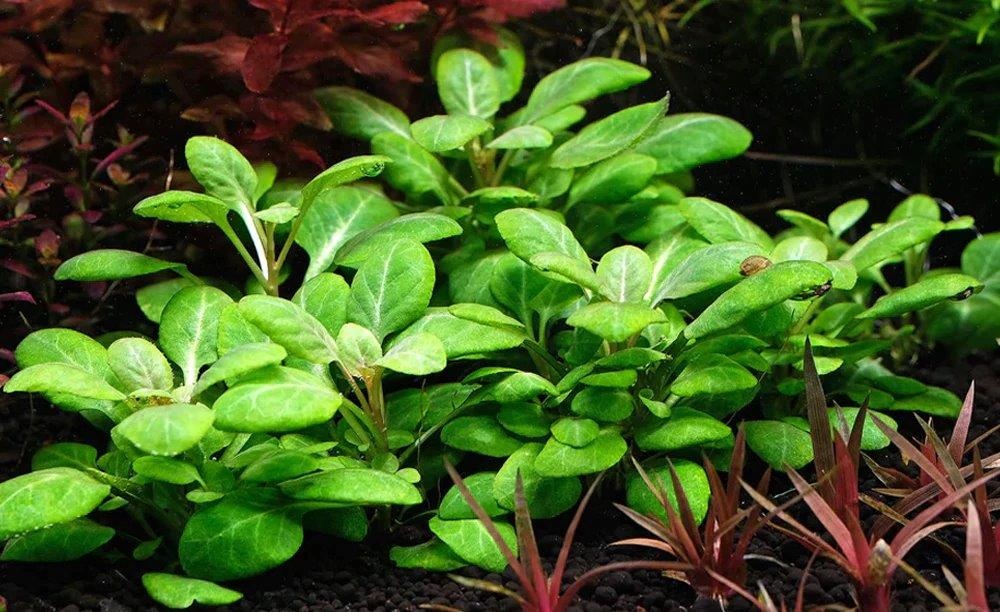De kleur van de bladeren veranderen in het aquarium van donker naar licht groen.